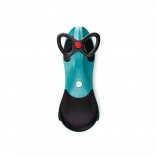 The fun and durable Didicar ride-on in turquoise moves without pedals by simply “wiggling” the handlebars. Kids and adults alike will enjoy active riding that develops coordination, balance, and fitness. The ride-on is robust, has a capacity up to 120 kg, is made of non-toxic plastic and stainless steel, and performs best on a smooth, hard surface both indoors and outdoors.