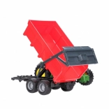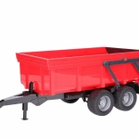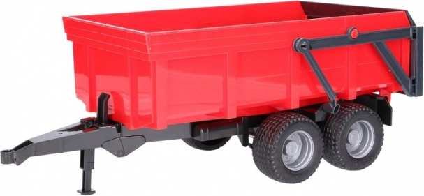 The tipper trailer is equipped with an automatic rear tailgate: it opens by itself when tipping and stays locked when closed. Thanks to the universal hitch, it can be connected to most BRUDER tractors and machines.