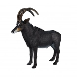 Precise coloration, prominently curved horns, and a realistic fur texture make this figure an impressive replica of a sable antelope for play and display.
