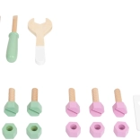 A stylish wooden workbench in Scandinavian design from small foot that develops children’s dexterity and imagination. It includes 24 accessories and a stable work surface at a height of 54 cm. Thanks to its soft pastel colors and natural wood, it blends perfectly into any interior. Ideal for fine motor skills training, creative play, and an introduction to tools.