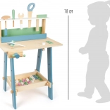 After unpacking, the workbench needs simple assembly, which is a great opportunity to involve children in the process and support their independence. The sturdy structure made of quality wood and the pleasant pastel shades ensure it becomes a favorite part of the kids’ room.