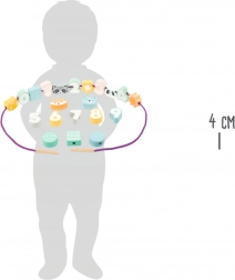 A fun and educational threading bead set for little ones in soft pastel colors. While playing, children practice fine motor skills, hand–eye coordination, and naturally get familiar with the basics of counting thanks to numbers 0–9 and cute animals. The wooden tips on the laces make threading easier and encourage creativity when creating their own combinations.