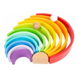 This large wooden rainbow offers dozens of ways to play: from building towers and bridges to creating marble runs and balance challenges. Children naturally learn colors, sizes, and sorting, practice hand–eye coordination, and develop logical thinking.