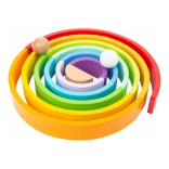 14 colorful arches can be stacked into rainbows, bridges, tunnels, and towers. Children practice balance and imagination with every new combination.