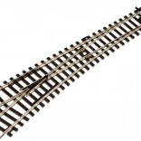 Turnout with detailed reproduction of wooden sleepers in authentic colors. Combines a straight track G239 and a 15° R9 curve to the left. Can be operated manually. A remotely controlled switch machine is also available, with a prepared connection provided. Main features: simple, left direction length 239 mm 15° radius (R9) 908 mm reproduction of wooden sleepers Documentation: PIKO H0 A-Gleis track brochure (DE, EN)