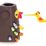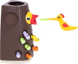 Test your accuracy using the magnetic beak that helps catch colorful worms from the tree.