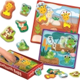 Discover a playful educational set where children match baby animals to their mom and dad, learn about the animals and their natural habitats, and practice patience, attention, and fine motor skills. The set is designed for the very young — the simple outline pieces are easy to hold and slot in.