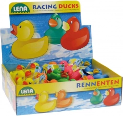 Rubber bath ducks sized 6 cm in colors yellow, orange, green, pink, and blue. Great bathtime fun for little ones, suitable from 6 months.