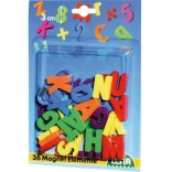 A fun set for little explorers: 36 large magnetic letters. The ideal addition to a magnetic board for learning the alphabet, building first words, and developing fine motor skills.