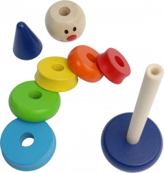 Thanks to the different ring sizes, children practice fine motor skills, logical thinking, and patience. The bright colors support visual perception and learning colors and order. The wooden design ensures durability and safe play.