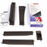 The set is suitable for building a small layout with a recommended base of 158×88 cm and a minimum construction area of 168×98 cm. To complete an independently powered oval, add curved tracks and one straight track with a terminal power connection.