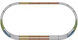 - Straight track G239 (55200) – 3 pcs; Straight track G231 with feeder (55201) – 7 pcs; Curved track R2 (55212) – 2 pcs; Curved turnout BWL R3/R2 left (55222) – 1 pc; Curved turnout BWR R3/R2 right (55223) – 1 pc