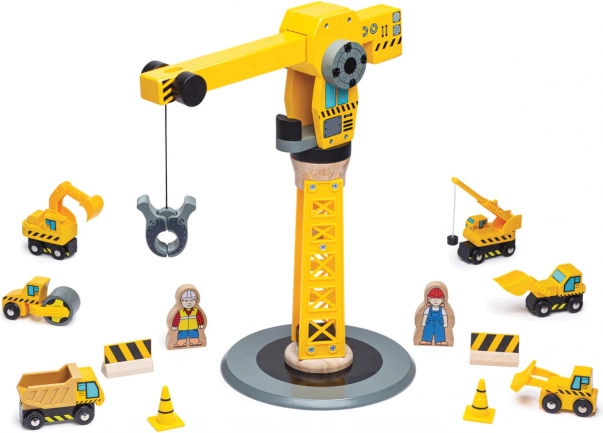 Discover the timeless wooden construction set with a large crane from BIGJIGS RAIL, bringing creative play, development of fine motor skills and coordination. Includes construction vehicles, worker figures, cones and barriers – everything ready for a fantasy construction site. Compatible with most wooden train sets on the market.