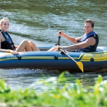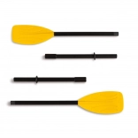 Plastic folding oars are paddles designed for inflatable boats, loungers, and other watercraft. Specifically, they are two-piece plastic shafts with a plastic paddle blade. The individual parts of the paddle set are securely connected by screwing. Thanks to the safety rings included in the package, the paddles are safely fixed in place.