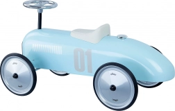 Discover the charm of classic race cars in a child-friendly form. This light blue metal ride-on, inspired by vintage cars, combines timeless design with safe and comfortable operation. Rubberized wheels provide a quiet ride even on hard surfaces, while the steering wheel controls the turning of the front wheels for natural handling.