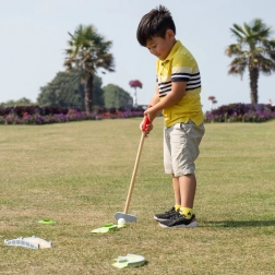 Discover the fun wooden mini golf set for kids from BIGJIGS TOYS, packed with wacky obstacles for games with family and friends. The set is made from high-quality wood from responsible sources, supports dexterity and hand–eye coordination, and includes scorecards for tracking scores.