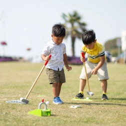 A variety of mini-golf elements and obstacles keep kids moving and help improve precision and game strategy.