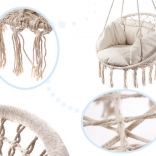 The Lulilo hanging chair impresses with a delicate macramé look and neutral color that fits perfectly in the living room, bedroom, or on a terrace. Soft cushions and a backrest ensure maximum comfort for reading, resting, or lounging.