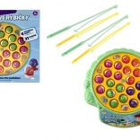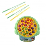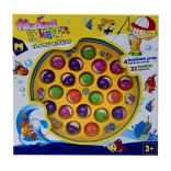 Once switched on, the game board starts to rotate and the fish begin opening and closing their mouths. Take one of the four fishing rods and try to catch as many fish as you can. The game is easy to understand, dynamic, and helps children practice hand–eye coordination and focus.