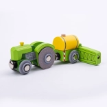 The green tractor with trailer and sprayer is a great addition to farm sets as well as standard railways. Thanks to the universal magnetic coupling, cars connect easily and expand play possibilities both on the farm and on the tracks.