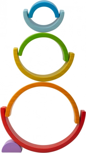 The small wooden BIGJIGS BABY rainbow is an ideal first construction toy for children from 12 months. Seven sturdy arches in bright colors can be stacked, layered, sorted by size, or used to create bridges, tunnels, and unique structures. Children naturally explore colors, proportions, and balance.