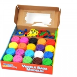 Discover a creative world with this large MODELO modeling clay set – ideal for kids who love to create, squeeze, and sculpt. The package includes 20 tubs of colorful modeling clay and plenty of accessories (tools, molds, extruders) that support fine motor skills, creativity, and imagination.