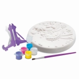 - Terracotta disc with relief, 6 acrylic paints, brush, stand