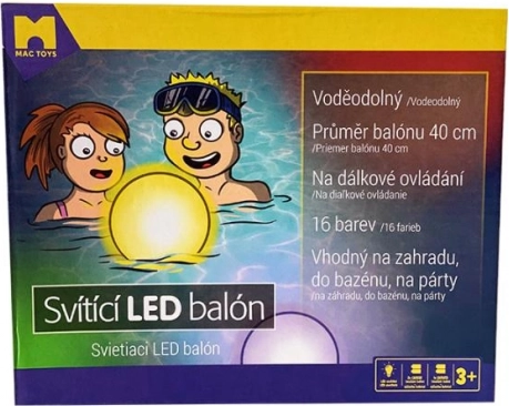 Enjoy the atmosphere and fun with a glowing LED ball with a diameter of 40 cm. With the remote control you can easily set the light color, blinking modes, and auto-off. The ball is water-resistant and durable, ideal for playing outdoors, at home, and in the pool.