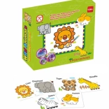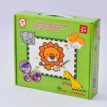 The Insert Puzzle Animals and Water Painting is the ideal combination for developing imagination and fine motor skills. Children can enjoy six different images – rabbit, elephant, giraffe, lion, zebra, and tiger.