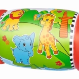 The inflatable crawling support roller is an ideal aid for babies and toddlers who are beginning to explore the world through movement. Transparent side panels allow children to watch the two rattling balls inside, which make sounds as the roller moves and encourage further exploration. The cheerful animal print increases appeal and supports visual perception.