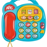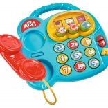 A fun and educational children's phone with a handset that develops fine motor skills and teaches numbers, letters, fruit, and animals. When buttons are pressed, it plays number sounds, melodies, and simulates dialing a phone number. The “display” shows random images when rotated, sparking curiosity and play.