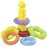 Pyramid with Colorful Rings is an ideal tool for developing motor skills and combinational abilities in children. It includes five different-colored rings of various shapes.
