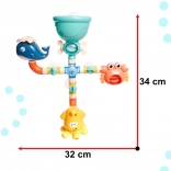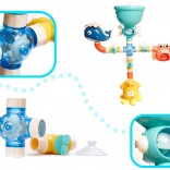 A colorful water track with sea-animal motifs turns every bath into exploration. Pour water into the top funnel and the flow activates the connected tubes, spins the wheels, and sets the figures in motion—fun that keeps children engaged and makes daily bathing more enjoyable.