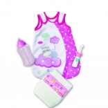 A practical accessory set for dolls sized 30–38 cm, containing everything for comfortable bedtime and care. It includes a sleeping bag, a toothbrush, a diaper, and a bottle – ideal for everyday play and nurturing imagination.