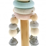 A cute wooden teddy-shaped rattle with softly chiming bells will delight every baby. The toy features pastel colors, supports fine motor skills, and is made from certified wood with eco-friendly, durable paints. 100% made in Germany.