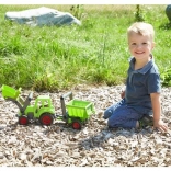 The LENA ECO tractor brings fun with respect for nature. Thanks to its sturdy build from recycled materials with added wood, it is durable and safe for little drivers. The front loader is fully functional and allows scooping and pouring materials, which supports fine motor skills and creative play.
