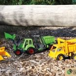 The fully mechanical loader lets kids scoop sand, pebbles, or blocks, supporting the development of motor skills and imagination.