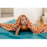 The generous 120 × 120 cm size offers dozens of uses: from swaddling and stroller cover to bib or changing pad. The stylish print of a leopard in coral tones is pleasing to the eye and pairs beautifully with the nursery and your travel essentials.