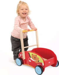 Do you want your little one to enhance their mobility and learn to walk in a fun way? The wooden walker in the shape of a car is the ideal helper. It is equipped with rubber wheels for quiet movement and a speed control system that protects the child from falling. Children will also find storage space for their favorite toys.