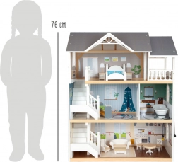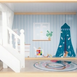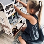 Step into a world of imagination with a spacious dollhouse offering three floors full of fun. Thanks to the open front, several children can play at once, ensuring endless hours of entertainment. The dollhouse is equipped with cozy rooms including a dining room, living room, kids’ room, bathroom, and bedroom.