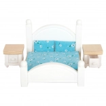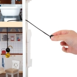 Details like a working doorbell, sliding doors, opening windows, and a bedside table with drawers add realism and interactivity to play. Furniture with wooden and plastic elements is included, enhancing the authentic play experience.