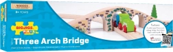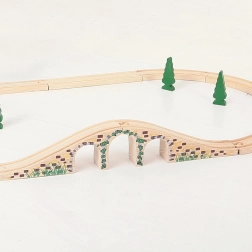 This stylish three-arch bridge is a perfect addition to any wooden railway. With realistic stone-brick detailing and a smooth finish, it adds height variation and visual appeal to your track. Trains can run both over and under the bridge, creating fun play scenarios.