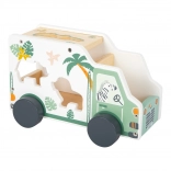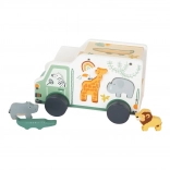 The Safari car provides space for developing imagination and fine motor skills by selecting and placing wooden animals.