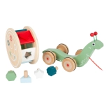 Introducing the adorable wooden snail on a string, which not only entertains but also helps in your child's development. Thanks to its lightweight design and smooth-rolling wheels, it is perfect for children who are beginning to walk, supporting their coordination and balance. Additionally, the snail serves as a sorter with five different shapes, which stimulates cognitive abilities and fine motor skills.