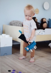 The Little Leg vacuum is the ideal companion for children to the world of household chores. Equipped with interesting details such as fleece pieces of "dirt" that can be attached using Velcro and stored directly in the vacuum bag. The vacuum serves not only as storage space, but also as a fun tool for realistic play.