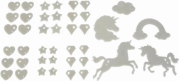 Create a magical atmosphere in moments. The set of fluorescent decorations with a unicorn motif, once charged with light, gently glows in the dark and turns any child's room into a fairy-tale kingdom. The pieces attach easily using adhesive putty included in the pack.