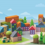 - 40 wooden blocks + play mat for building a village