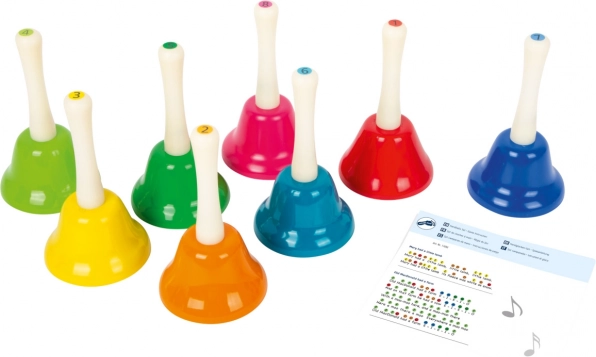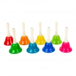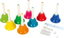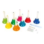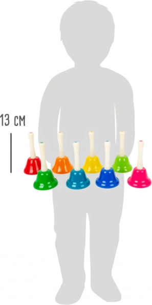 Discover the magic of music with this set of eight bells, which is not only beautifully colorful but also functionally ensures each note from C to B. Children can learn various melodies, such as 'Old MacDonald Had a Farm', 'Jingle Bells', and 'Twinkle, Twinkle, Little Star'. This set supports musical education, rhythm development, and fine motor skills. Ideal for kindergarten and lower elementary schools.