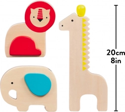 - 3-piece set: 2× maracas (elephant, lion) and 1× giraffe guiro