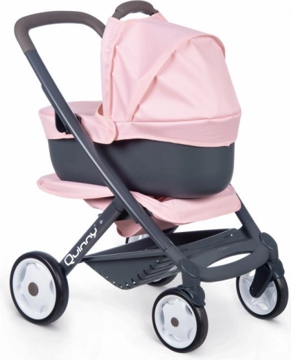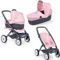 A stylish 2-in-1 doll stroller for dolls up to 42 cm in an elegant light pink color, offering versatile use as both a pram and a pushchair. Thanks to the removable carrycot, swivel front wheels, and an ergonomic handle (65 cm), it’s ideal for comfortable play indoors and outdoors. Quiet wheels with a noise-reducing layer ensure a smooth, peaceful ride.